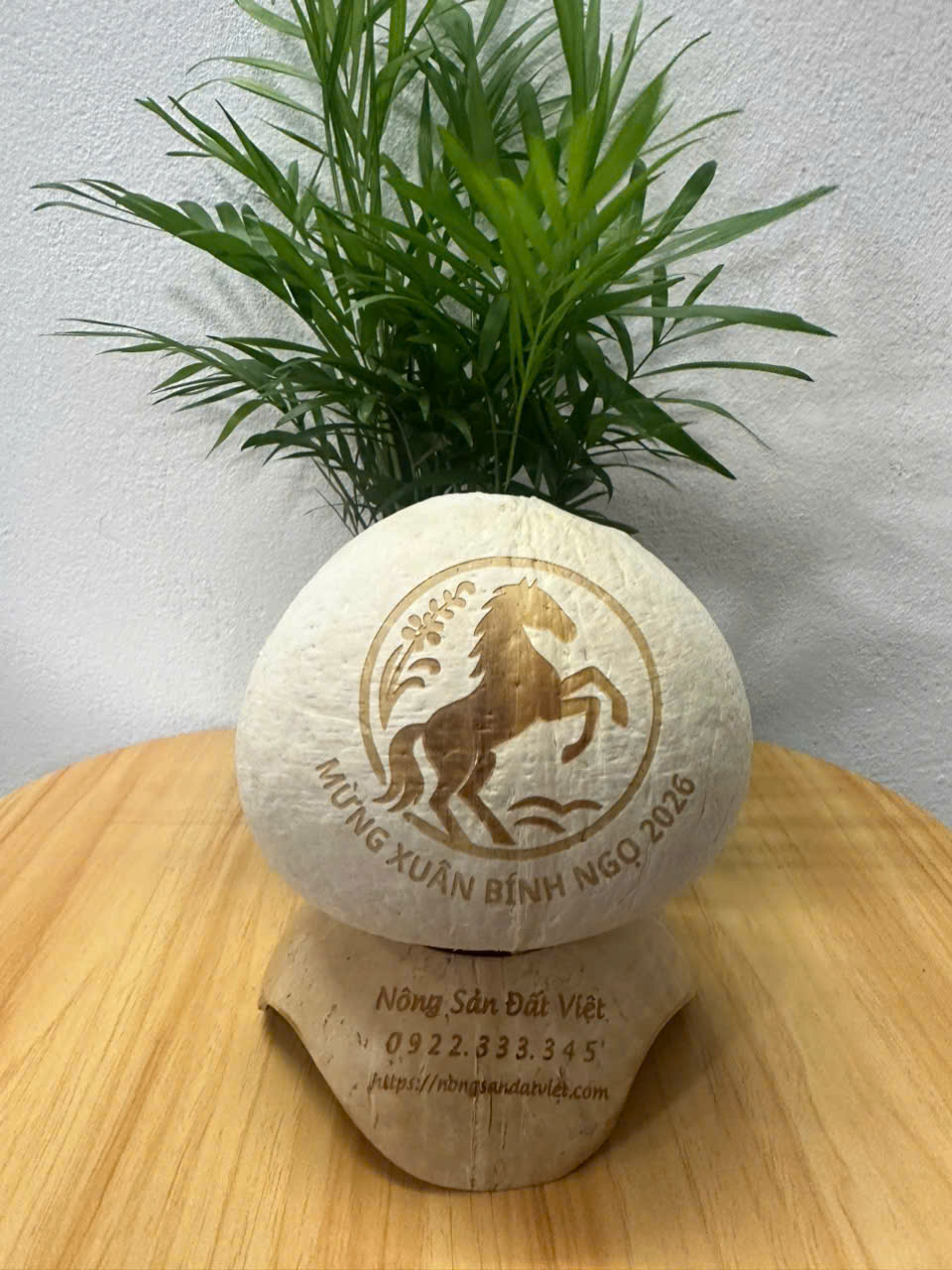 Dừa vốn gắn bó với văn hóa Việt, tượng trưng cho sự mộc mạc, tươi mới và sung túc. Khi được khắc thêm hình ảnh, chữ thư pháp, logo hoặc lời chúc, mỗi trái dừa trở thành món quà mang dấu ấn riêng biệt, vừa truyền thống vừa hiện đại.